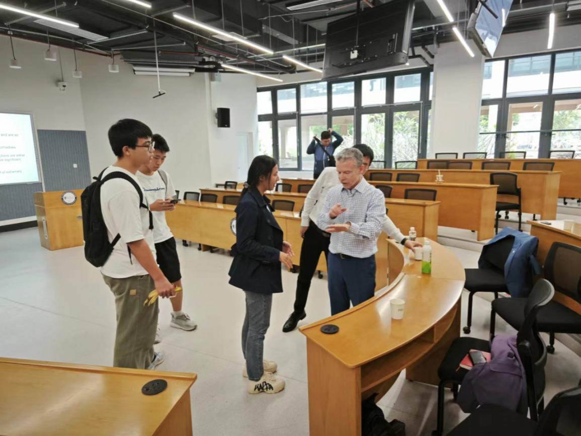 Professor Frank first delivered an academic lecture titled "Vortex Dominated Flows" to all teachers and students in the pilot zone. In the lecture, Frank discussed the importance of vortex-dominated fluid dynamics in nature, the challenges faced by humanity, and how this field of fluid dynamics integrates with engineering applications. His presentation was characterized by concise language, clear logic, and vivid examples. Following the lecture, the British delegation visited various shared spaces in the zone, including the library, stadium, and public laboratory buildings. They were briefed on the zone's efforts to meet major national strategic needs, its planning and construction, and future development goals.